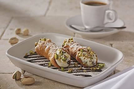 Uma das sobremesas mais tradicionais da Itália, os cannoli (ou "o cannolo", no singular) são doces originários da região da Sicília, maior ilha do mar Mediterrâneo localizada perto do "dedo da bota" do mapa italiano. Feito a partir de uma massa frita em formato de tubo, o recheio dessa iguaria, criada há quase 2.000 anos, leva creme de mascarpone e ricota e gotas de chocolate. Na finalização, o doce ainda é polvilhado com açúcar de confeiteiro e pistache, que confere delicadeza e sofisticação ao prato.