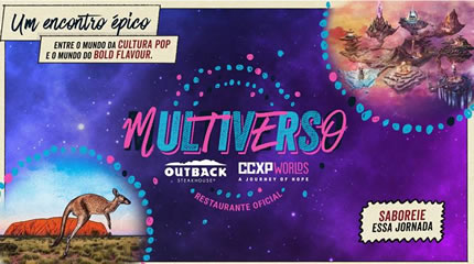 Heróis, poder, magia e fantasia. Um mundo repleto de aventura e desafios, onde não existem limites para a criatividade e a imaginação. Este é o universo da CCXP Worlds, festival brasileiro de cultura pop que passeia por videogames, histórias em quadrinhos, filmes e séries para TV. E seguindo esse espírito desafiador, pela primeira vez na história, o Outback Steakhouse marca presença nesse grande evento, e com entrada triunfal, faz sua estreia já como o restaurante oficial da CCXP Worlds.