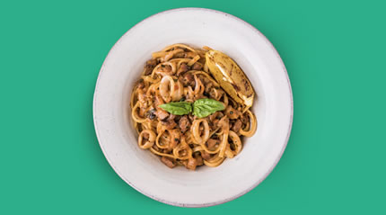 O Linguine alla Vodka com Calamari (R$ 49,90) traz anéis de lula salteada com pancetta flambadas na vodka, ao molho marinara com sugo rosa, folhas de manjericão, e é servido com uma fatia de limão siciliano grelhado. Já o Risoto Mediterrâneo Rosé (R$ 49,90), é composto por risoto de lula com pancetta, cubos de tomates e folhas de manjericão ao molho pomodoro.