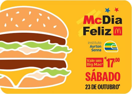 Os vouchers antecipados poderão ser trocados por sanduíches Big Mac no dia oficial da campanha, 23 de outubro, em todos os restaurantes McDonald's do Brasil participantes.