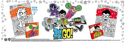 O lançamento TEEN TITANS GO! se inspira na popular série de super-heróis adolescentes e traz oito opções, cada uma delas composta por uma caixa decorada, 2 lápis de cor com duas pontas, uma folha de adesivos inspirados no universo dos heróis e um mega pôster com atividades interativas na parte da frente e uma divertida história em quadrinhos no verso. São eles: Starfire™, Robin™, Raven™, Cyborg™, Teen Titans™, Beast Boy™, Robin & Starfire™ e Cyborg & Beast Boy™. Todos os itens são feitos de papel e materiais de origem sustentável ou certificados, livres de desflorestamento e recicláveis.