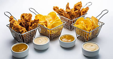 O Crispy Chicken Tenders são tiras de peito de frango empanadas e fritas na hora, servidas bem crocantes, acompanhadas de molho Honey Mustard levemente apimentado. Elas combinam muito bem com outra estrela do cardápio, as Kettle Chips, batatas fritas em formato de chips, crocantonas e temperadinhas, levemente apimentadas e avinagradas, acompanhadas do molho Aioli.