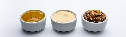 O Molho Aioli, por exemplo, tem como base maionese defumada com especiarias da casa e um leve toque de alho. Já o Aussie Honey Mustard traz mostarda e mel da casa, e a essência do Sweet and Spicy - picante e adocicado, sendo uma combinação perfeita para o Crispy Chicken Tenders. Por último, temos o Bacon Jam, uma combinação rústica de cebola caramelizada e bacon. Ótimo acompanhamento para incrementar os sanduíches Aussie Grill.