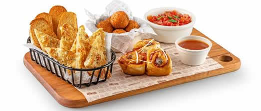 A 'Tavola di Antipasti' (R$ 59,90) inclui uma seleção especial de aperitivos com os carros chefes de Abbraccio. São eles o Fiori di Pepperoni e o Arancini, além de pizza crostini e ciabattas crocantes servidas com queijo mussarela fresco, tomate em cubos e molho pesto.