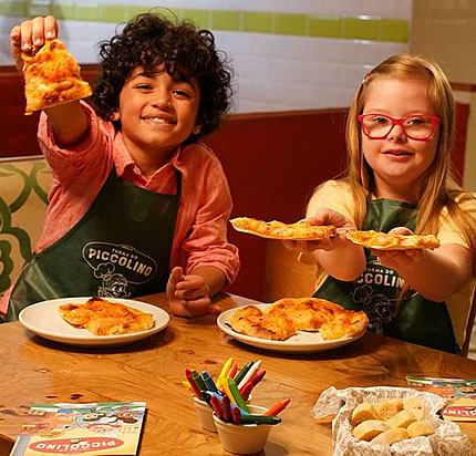 As crianças têm a oportunidade de se tornarem verdadeiros pizzaiolos! Elas preparam a própria pizza, decoram conforme sua imaginação e se divertem durante o processo. Além disso, podem levar para casa um avental culinário e um livro de atividades da Turma do Piccolino, que são os personagens da rede.