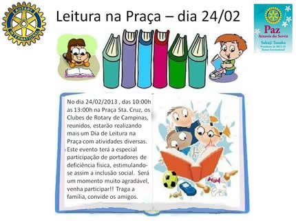 O evento Leitura na Praça, comemorando mais uma aniversário do Rotary International.