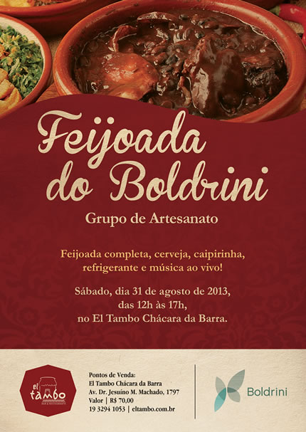 Feijoada especial oferecida pelo Restaurante El Tambo, Chácara da Barra, para o Hospital Infantil Boldrini.