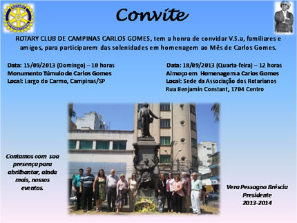 O Rotary Clube de Campinas Carlos Gomes no mês de setembro presta as merecidas homenagens ao seu patrono Maestro Carlos Gomes.