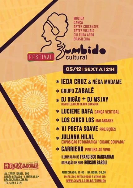 A noite apresenta o evento Festival Zumbido Cultural, como foi intitulado e resgata, valoriza e mostra mais da arte e cultura afro-americana, que ninguém pode negar que fez parte da história do Brasil em um passado de descobrimento e após o período.