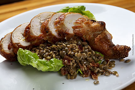 O menu escolhido inclui galeto recheado e fettuccine a napolitana