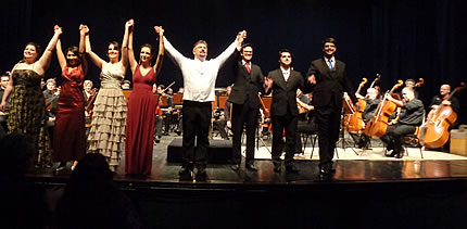Um concerto de gala, unindo jovens solistas líricos com a Orquestra Sinfônica Municipal de Campinas, sob a regência do maestro Victor Hugo Toro, é a atração do próximo fim de semana, dias 8/10 (sábado) as 20hs e 9/10 (domingo) às 11 horas, no Teatro Municipal José de Castro Mendes. No palco, estarão vozes premiadas em concursos do Mês de Carlos Gomes, como as sopranos Ana Beatriz Machado, Érika Andrade, Laura Duarte e Melissa Sofner, bem como o tenor Gustavo Caires, o barítono Willian Donizetti e o baixo Volnei Santos, interpretando árias, duetos e até o famoso quarteto da ópera Rigoletto, de Verdi, Bella figlia dell'amore. Este mesmo concerto foi apresentado em 19 de agosto em Indaiatuba, dentro do projeto da OSMC de se apresentar em concertos especiais em cidades da RMC. A narração será de Alcides Acosta, tenor e presidente da ABAL Campinas.