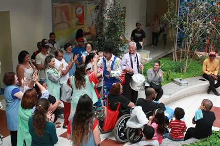 Malabaristas, equilibristas, bailarinas e palhaços do Mirage Circus, do ator Marcos Frota, estiveram no dia 6, às 10 horas, para um espetáculo exclusivo aos pacientes em tratamento. A apresentação circense será no hall do prédio da Reabilitação por aproximadamente 30 minutos e terá a presença do premiado malabarista Denis Silveira e dos palhaços Chuvisco e Chavequinho, entre outros.