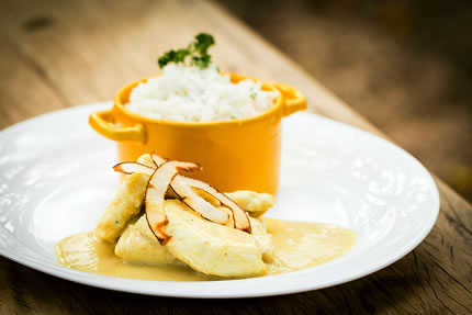 O prato principal agrada tanto quem gosta de peixe ou ainda quem prefere carne. As opções são: Aruanã cozido no leite de coco, com molho de capim limão e gengibre, acompanha arroz de coco ou uma Costela sobre purê de abóbora com espuma de canela e farofa de castanhas.