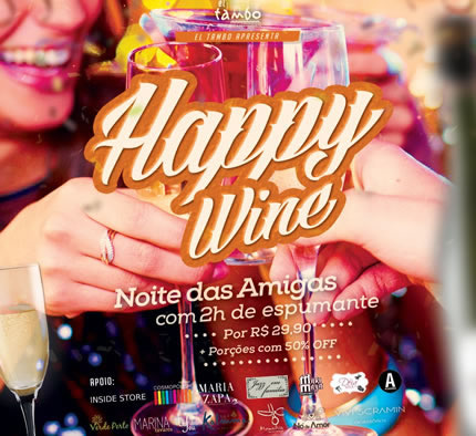 Dia 08 de Março é comemorado o Dia Internacional da Mulher, e para celebrar o El Tambo Bar e Restaurante preparou um calendário pra lá de especial. Todas as quintas-feiras acontece o Happy Wine, um evento exclusivo para ELAS. Open bar de espumante das 18h às 20h pelo valor promocional de R$ 29,90, porções exclusivas da casa com 50% de desconto, além de muitas atrações, presentes e surpresas. Confira o calendário bacanezimo das quintas-feiras: