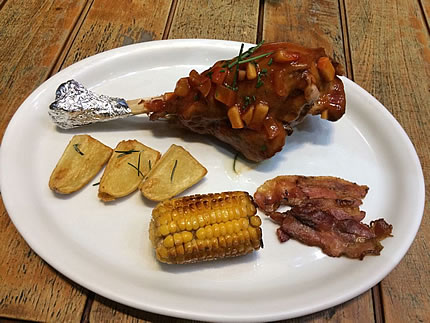 A carne será servida com um molho de barbecue com maçã adocicada, bem assada e defumada. De acompanhamento, será servido milho assado e batatas rústicas com alecrim. E para não perder a tradição norte-americana, o prato também terá bacon frito como acompanhamento, alimento que se tornou também super brasileiro.