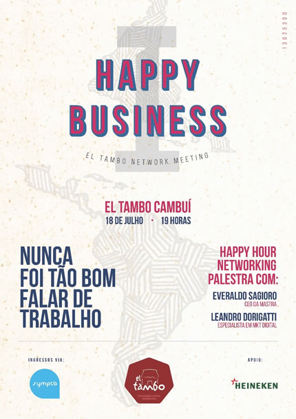 O evento irá começar às 18h com um boas-vindas, já as 19h será o bate-papo com os convidados especiais e para finalizar o evento com chave de ouro às 20h começará o happy hour com delícias latinas e network. Para inscrever uma empresa no evento ou obter mais informações, basta enviar um e-mail para comercial@eltambo.com.br.