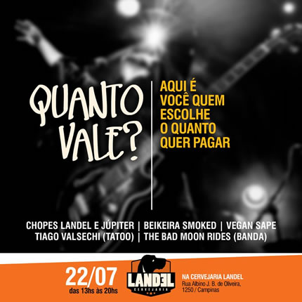Com objetivo de fomentar a cultura e abrir espaço para os artistas da cidade, a Cervejaria Landel criou o "Quanto Vale?", que visa oferecer arte e gastronomia a preços democráticos.