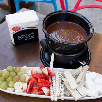 Outro clássico de inverno chegou ao Brexó, o fondue! Para começar nada melhor do que um fundue de queijo com vinho branco acompanhado de uma incrível porção de coxinhas que só o Brexó sabe fazer. Para encerrar com chave de ouro, um fondue clássico de chocolate com mix de frutas, waffers, canudinhos de chocolate e marshmallows.