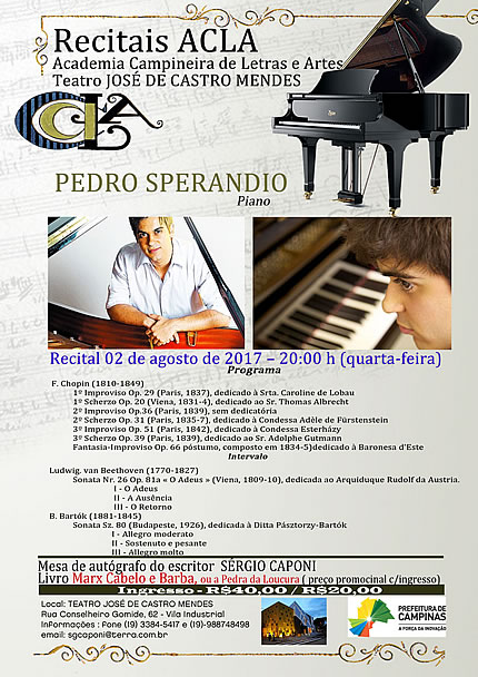 O paulistano Pedro Sperandio vem conquistando seu merecido lugar de destaque em meio à nova geração de pianistas brasileiros. Dotado de uma marcante personalidade artística, o jovem músico também traz consigo uma vasta bagagem cultural, adquirida através de seus estudos e inúmeras apresentações em ambientes musicais distintos, incluindo Alemanha, França, Espanha, EUA, Canadá e Brasil.