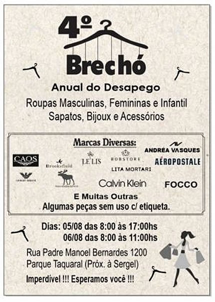 4º Brechó Anual do Desapego do MAE Maria Rosa