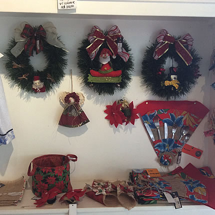 A loja traz, ainda, uma linda coleção de porta-velas em vitral da Armazém das Oficinas - feitas pelos assistidos do Hospital Cândido Ferreira de Campinas -, além de graciosas bonecas e bonecos de pano da Filhotes de Coruja, de Ribeirão Preto. Há também uma centena de produtos importados.