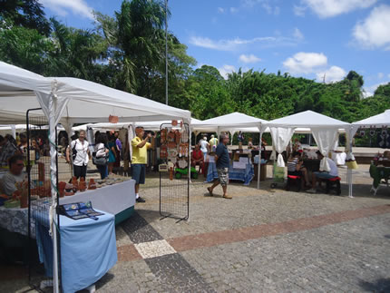 Dentre os produtos oferecidos estão: cerâmica, patchwork, bolsas, roupas, bijuterias, acessórios, objetos de decoração em madeira, porcelana, entre muitas outras peças confeccionadas manualmente pelos artesãos. Dentre as barracas de comida estão: pastel de feira, pães artesanais, lanche de pernil, strudel e yakissoba.