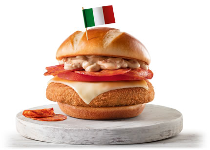 McItália | Domingo: Composto por queijo muçarela, polpetone, tomate, pepperoni e melt de muçarela com tomate seco no pão de brioche. McFritas tradicionais com molho de muçarela com tomate seco e bacon picado.