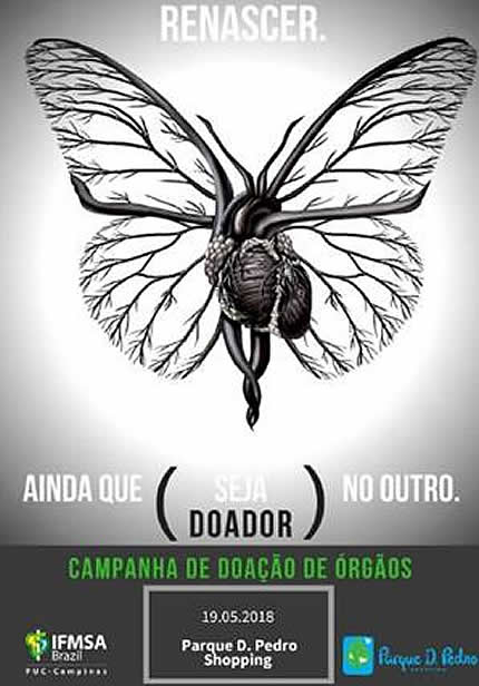 O Parque D. Pedro Shopping realiza no próximo sábado, dia 19 de maio, a campanha de conscientização sobre doação de órgãos e tecidos. A ação, intitulada ‘Renascer ainda que seja no outro´, é resultado da parceria entre o centro de compras e o comitê local PUC Campinas e da International Federation of Medical Student´s Associations of Brazil (IFMSA) . A IFMSA Brazil é uma entidade de estudantes de Medicina sem fins lucrativos e atualmente realiza trabalhos voluntários com universitários de 125 faculdades no País.