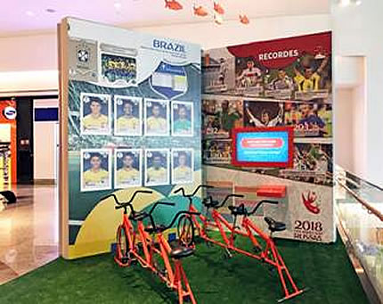 Há também a Timeline Panini, espaço que ilustra a história das Copas do Mundo e da própria Panini, com direito a Quiz interativo e divertido; Figurinhas Iluminadas onde o público é estimulado a pedalar; por último o Espelho Mágico, onde é possível escolher a camisa da seleção preferida, vestir virtualmente e compartilhar a foto nas redes sociais.