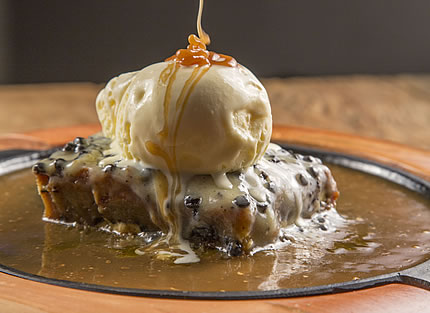 Aqueça uma panelinha. Coloque um pouco de calda de caramelo e o Brownie. Em seguida o sorvete de creme. E por fim jogue calda de caramelo. Servir rápido.