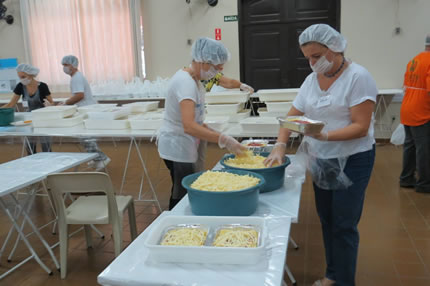 "Essa campanha – que existe há mais de 15 anos na Casa de Jesus – é realizada duas vezes ao ano: em abril e outubro. O Salão Paineiras torna-se uma verdadeira linha de produção de lasanhas. É muito bonito de se ver o trabalho dos voluntários – tanto na montagem das lasanhas, feitas com todo o carinho e cuidado, quanto no serviço de atendimento a quem vai buscar os itens para seu almoço de final de semana ou para congelar a lasanha para consumir em outra oportunidade", diz Claudia Bovo, voluntária responsável pela coordenação da Lasanha Beneficente.