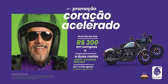 Coração Acelerado é o tema da nova campanha para o Dia dos Pais do Parque D. Pedro Shopping, que neste ano vai sortear duas motos Harley-Davison, Sportster Iron 1200™, uma na cor branca e outra na cor preta. Para quem gosta de sentir a respiração mais profunda e o coração batendo mais forte não pode perder a promoção que vai de 1º a 11 de agosto.