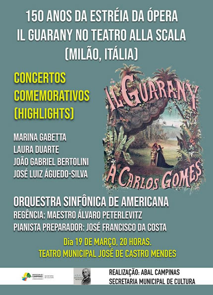 Comemoração de 150 anos da estréia da Ópera O Guarani de Carlos Gomes e 50 anos da inauguração do Teatro Castro Mendes (março 1970)